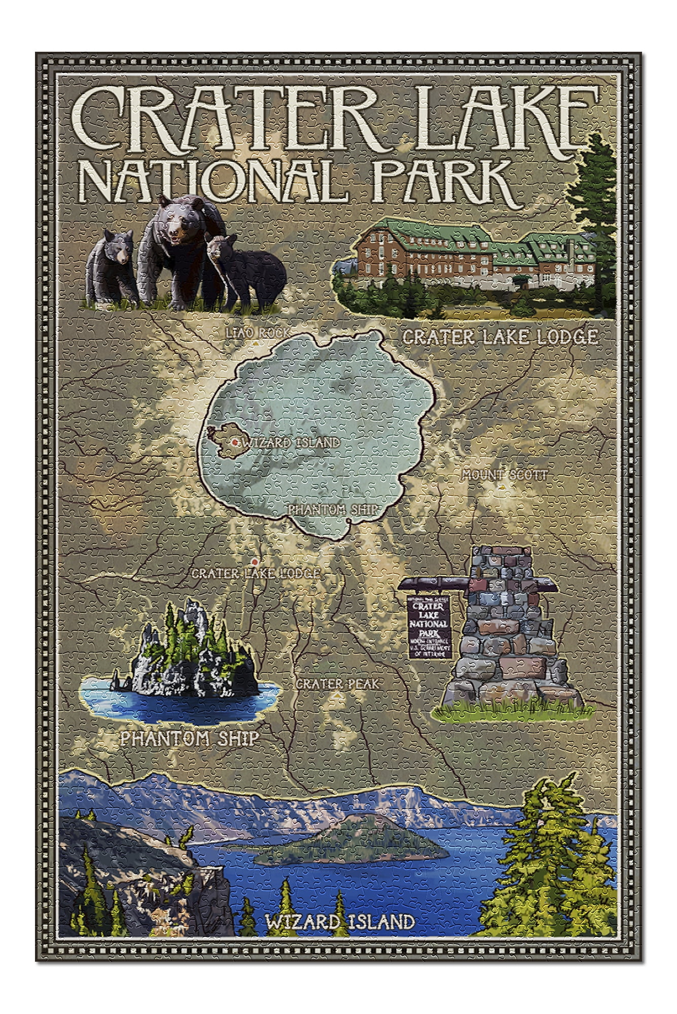 Crater Lake National Park Oregon Map And Icons 20x30 Premium 1000 Piece Jigsaw Puzzle Made In Usa Walmart Com
